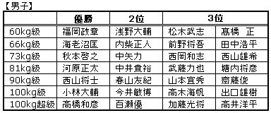 男子60kg級 野村選手、同100kg超級 棟田選手は怪我のため欠場。